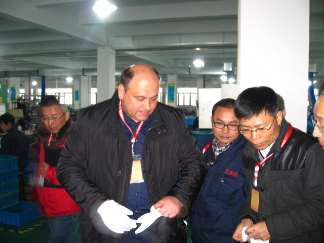 簡短的人員介紹和觀看了松澤電器企業(yè)宣傳片后,客人們在我司人員的陪同下,來到了生產(chǎn)一線,興致勃勃的參觀我司產(chǎn)品的生產(chǎn)制造過程。
