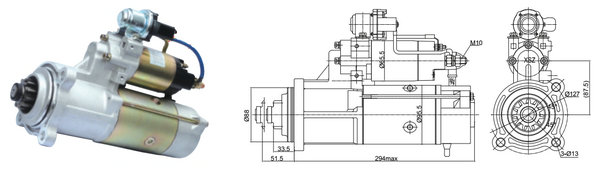 型號(hào):SZQ21095018 規(guī)格:24V 7.5kW 特性:模數(shù):4 齒數(shù):11 配套機(jī)型:玉柴:6L、6M(50C端為兩針式插頭)